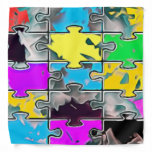 Description: A piece of artwork resembling a puzzle with a cool color pattern on the puzzle pieces.