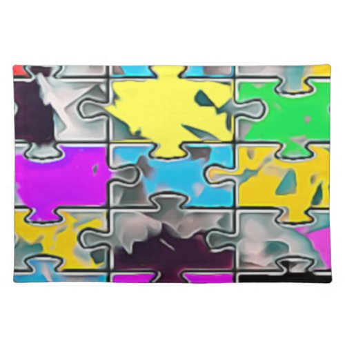Description: A piece of artwork resembling a puzzle with a cool color pattern on the puzzle pieces.