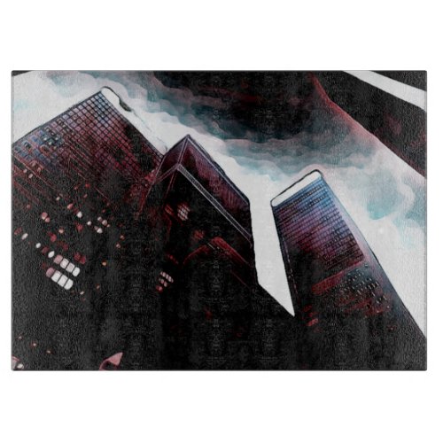 Description: An abstract artwork from Krazee Kustom that features tall buildings looming over everyone.