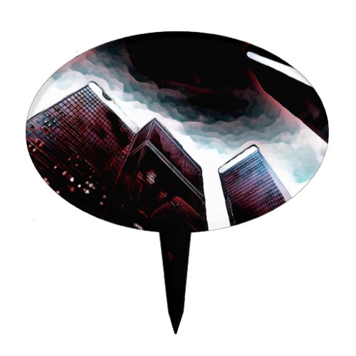 Description: An abstract artwork from Krazee Kustom that features tall buildings looming over everyone.
